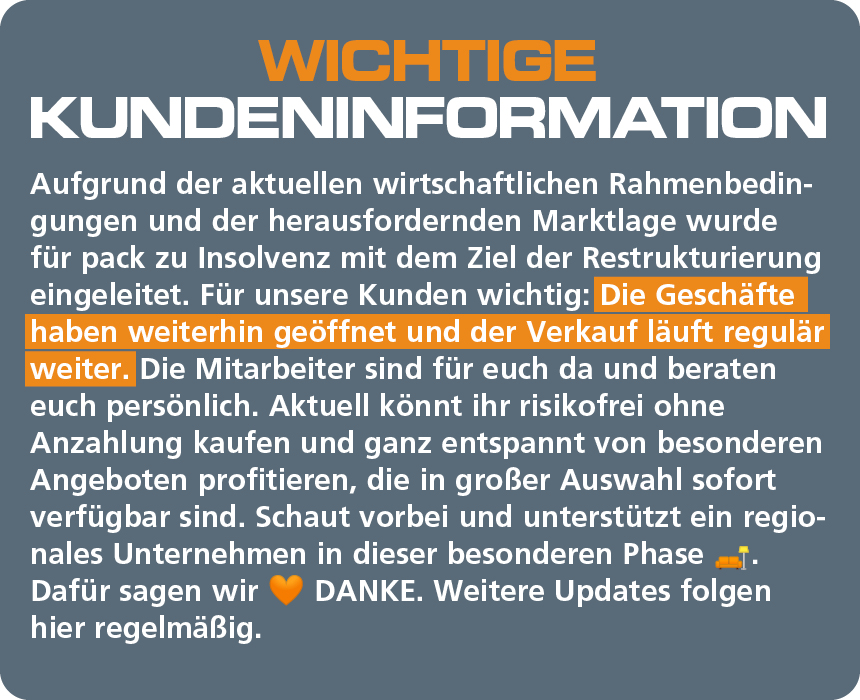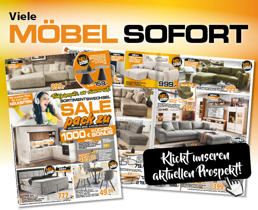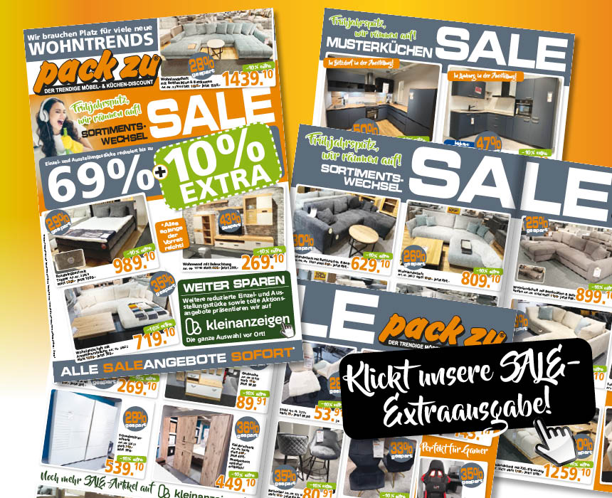In der Rubrik pack zu SALE, mit einem Klick im pack zu Onlineprospekt und im größten SALE Onlineportal Deutschlands findet ihr auf pack zu Kleinanzeigen immer ganz besondere Schnäppchen. Alle sofort oder kurzfristig zum gleich trendig wohnen erhältlich.